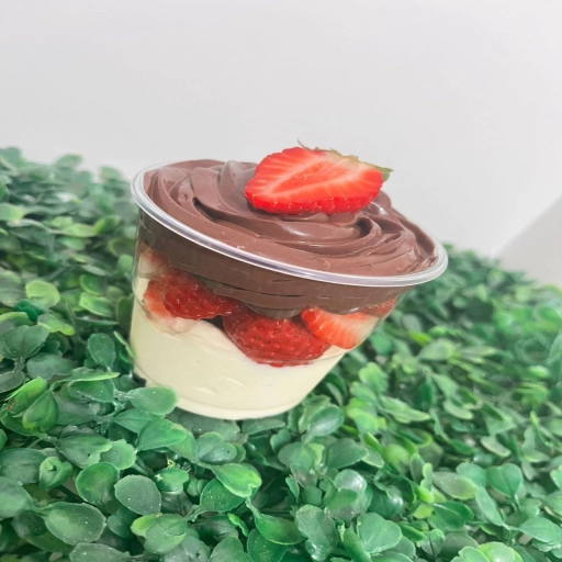 creme de ninho, morangos e ganache de chocolate meio amargo (copo 200ml